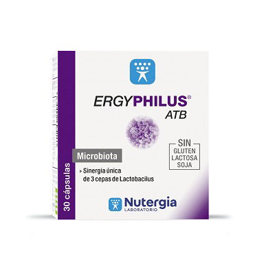 ERGYPHILUS® ATB es una sinergia única de 3 cepas de lactobacilos, rigurosamente seleccionadas por sus propiedades beneficiosas sobre las molestias gastrointestinales debidas a la toma de antibióticos.
