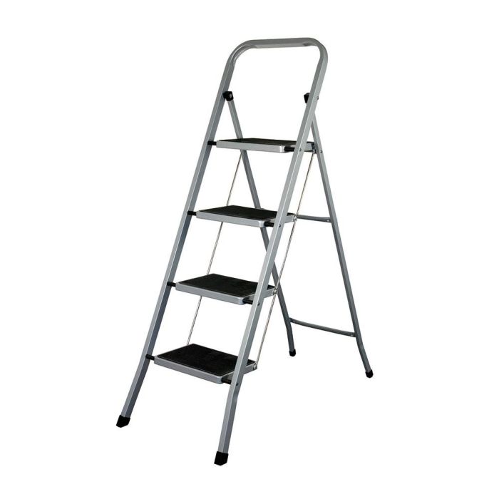 Edm Escalerilla de Acero 4 Peldaños con Plataforma Antideslizante y Sistema de Seguridad
