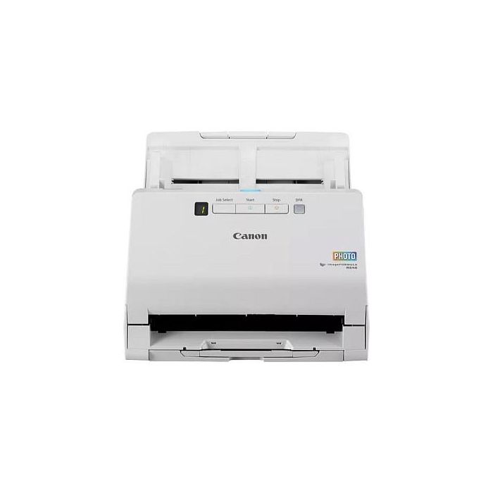 Canon RS40. Resolución óptica de escáner: 600 x 600 DPI, Velocidad de escaneo ADF (b/n, A4): 40 ppm, Velocidad de escaneo ADF (color, A4): 30 ppm. Tipo de escaneado: Escáner alimentado con hojas, Color del producto: Blanco. Tipo de sensor: CMOS CIS, Fuentes de luz: LED RGB, Controladores de escaneado: TWAIN. Capacidad de entrada estándar: 40 hojas, Capacidad del alimentador automático de documentos: 60 hojas. Grosor del soporte (min): 0,04 mm, Espesor de la tarjeta (máx.): 1,4 mm, Anchura máxima de escaneo: 21,6 cm