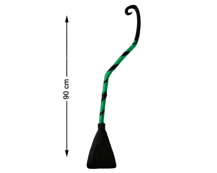 Escoba Desmontable Verde y Negra 90 cm para Disfraz de Bruja Halloween Carnaval
