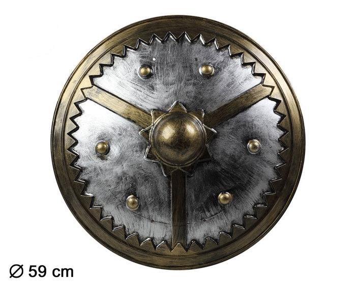 Si quieres destacar con un look de auténtico combatiente, este escudo vikingo redondo con acabado metálico envejecido es tu mejor aliado. sus 59 cm lo hacen manejable pero llamativo, perfecto para disfraces históricos o medievales. añádelo a tu traje de cruzado, caballero o vikingo y siéntete parte de la batalla.