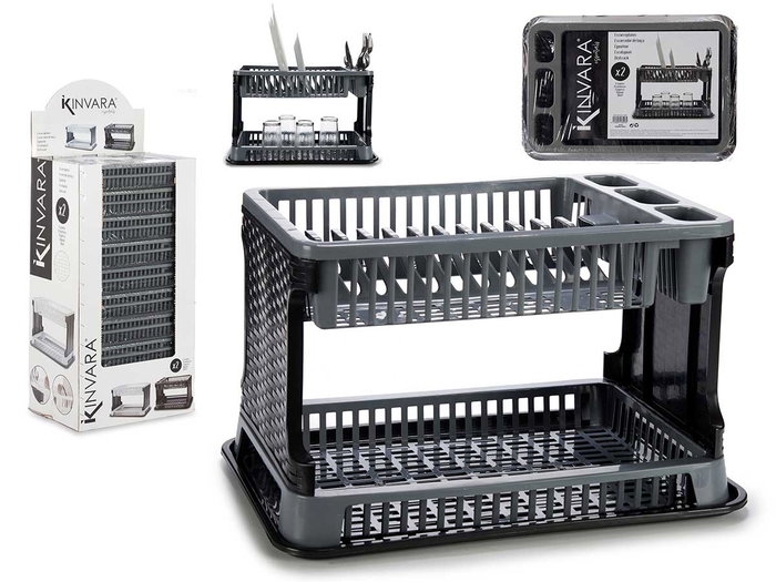 ESCURREPLATO PLASTICO 2 PISOS RATTAN GRI