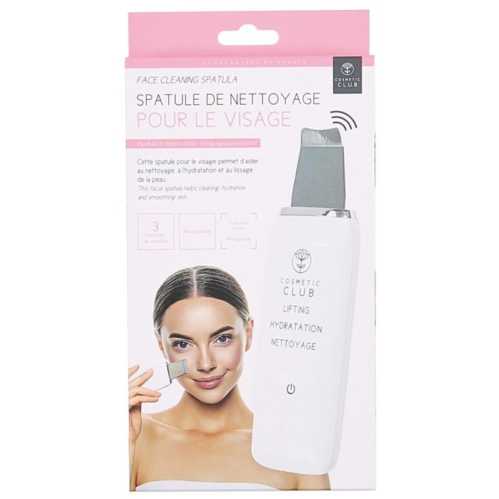 Cosmetic Club Espátula de Limpieza Facial, Limpia, Hidrata y Alisa la Piel, Elimina Células Muertas y Suciedad, Tres Intensidades de Vibración, Recargable