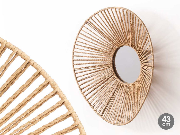 Giftdecor Espejo Oval Vuelo Cuerda 43 cm x 38 cm x 13.5 cm Vidrio Metal Papel Natural (Set de 4)