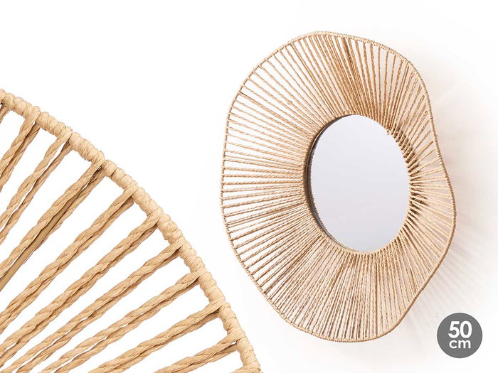 Giftdecor Espejo 50 cm Vuelo Ondas Cuerda Metal Vidrio Papel Natural (Set de 4)