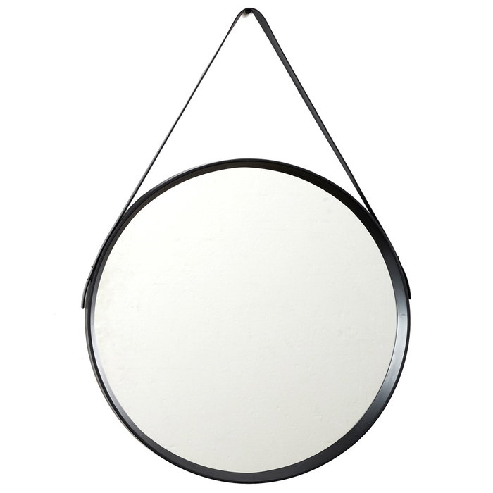 - Los espejos se reinventan. Te encantará este modelo redondo suspendido por un tirador de color negro. Adorarás su estilo de barbería.