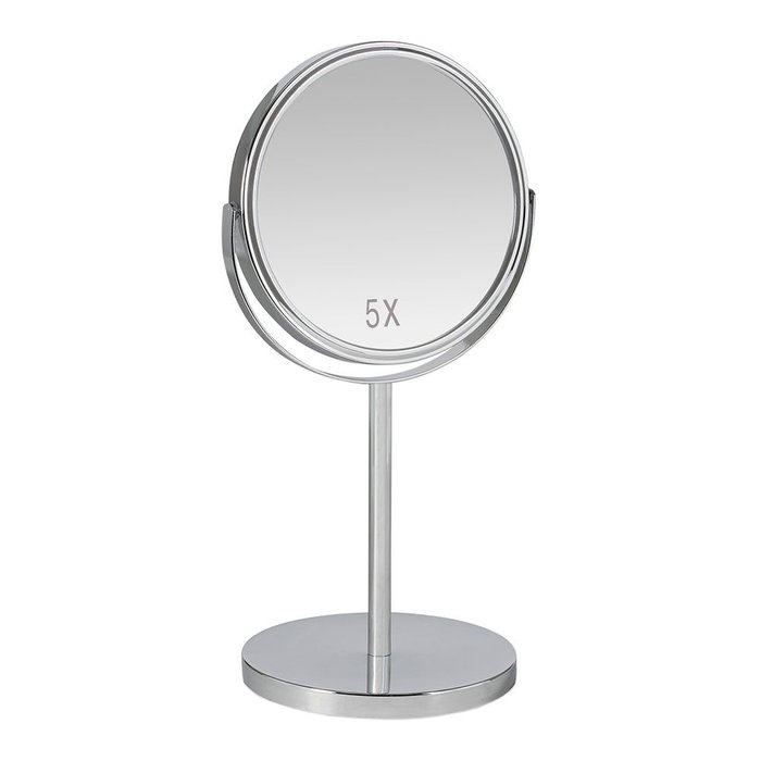 Espejo pie cromado x5au andrea house. espejo redondo 2 caras con pie, acabado en metal cromado. caras de 1 aumento y 5 aumentos. dimensiones: 18,5x15x34,5cm