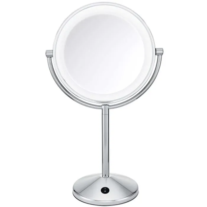 BaByliss Paris 9436E 10x förstoringsljusspegel är det perfekta tillbehöret för en perfekt makeup. Med sin dubbelsidiga tillåter den en normal vy och en förstorad vy x10 för de mest exakta detaljerna. De mjuka LED-lamporna säkerställer optimal belysning för perfekt makeup. Spegeln är batteridriven och kräver 3 AA-batterier (ingår ej).