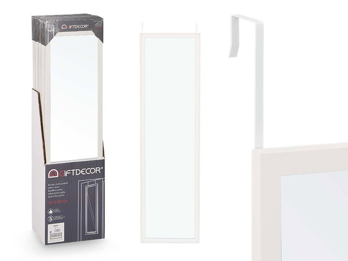 Giftdecor Espejo Puerta Blanco con Marco de MDF y Metal, Vidrio Reflectante, Dimensiones 34x124x1.5 cm - Ideal para Decoración de Pared (Set de 12)
