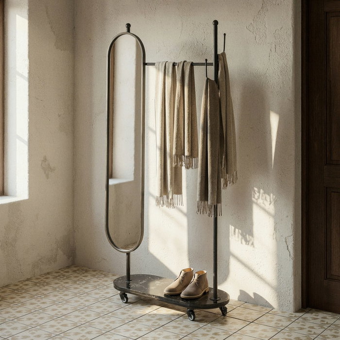 Espejo Recibidor Negro Metal-Mármol 80 X 32 X 175 cm