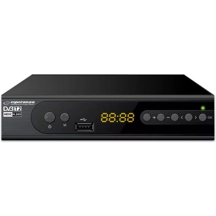 El sintonizador TDT Esperanza DVB-T2 DVB-C es la solución perfecta para convertir tu televisor en un equipo digital inteligente. Compatible con las normas de transmisión más modernas, recibe señales de televisión digital terrestre (DVB-T2) y por cable (DVB-C) en alta definición. Su conectividad HDMI garantiza una imagen nítida y un sonido de alta calidad, mientras que el puerto USB te permite grabar tus programas favoritos y reproducir contenido multimedia desde dispositivos externos.