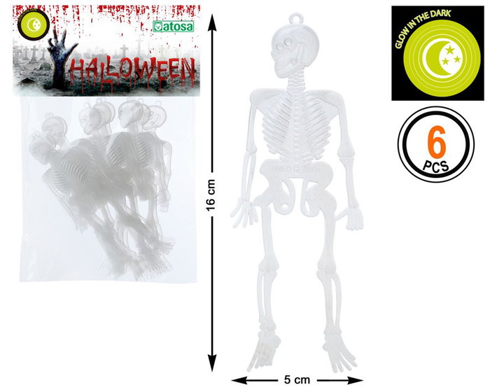Aporta un efecto luminoso y tenebroso con estos esqueletos que brillan en la oscuridad. perfectos para colgar en estanterías, árboles o utilizar como parte de un centro de mesa. son ligeros, duraderos y añaden un toque sorprendente a tu decoración de halloween.