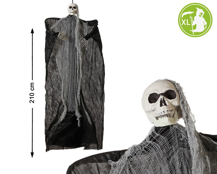 Aumenta el nivel de tu decoración con este colgante esquelético de gran tamaño. sus 210 cm lo convierten en un elemento protagonista, ideal para zonas amplias, entradas, jardines o escaparates de halloween. un efecto tétrico asegurado.