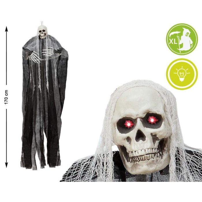 Colgante Esqueleto XL Con Capa Negra Y Luz En Ojos 170 cm Decoración Halloween