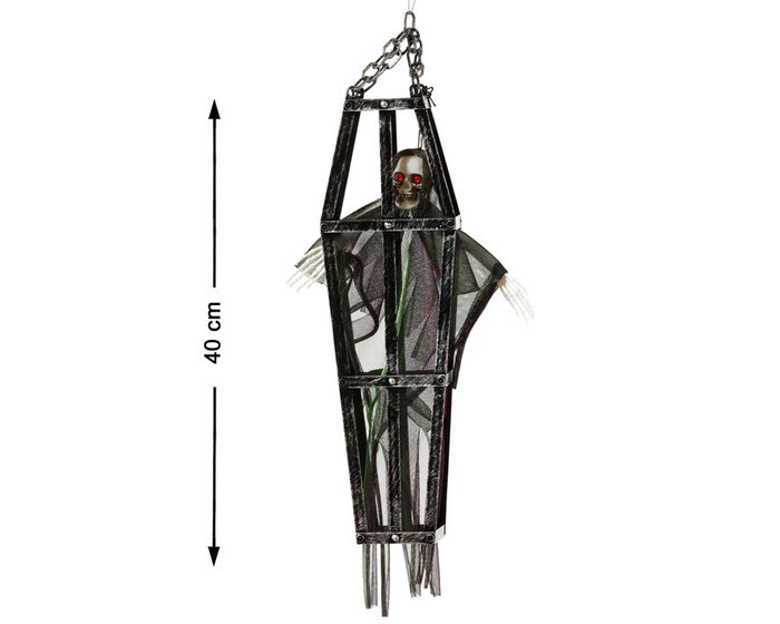 Sorprende a todos con este esqueleto decorativo enjaulado, una figura siniestra que añade realismo a tus decoraciones de terror. sus dimensiones lo hacen perfecto para rincones, muebles o incluso para colgar. ideal para fiestas de halloween, escaparates o ambientaciones de pasajes del miedo.