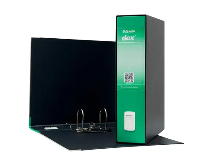 Esselte Archivador de palanca Dox folio en carton forrado, lomo 80 mm con caja, color verde, 352x288x85 mm