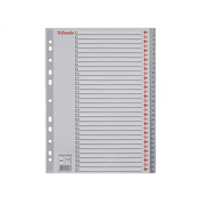 Esselte Índice Numérico Multitaladro 1-31 Polipropileno A4 Gris con Carátula Índice Cartón Color