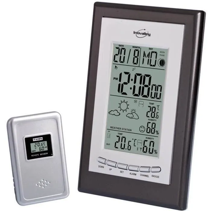 Inovalley SM121 Estación meteorológica inalámbrica: previsión, temperatura interior/exterior, humedad, hora, calendario y alarma.