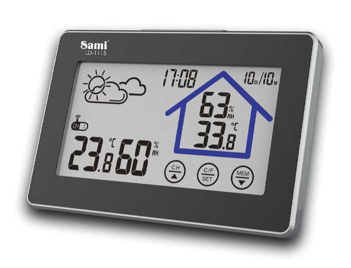 SAMI Estación Meteorológica Profesional LCD con Sensor Interior y Exterior, Luz de Fondo, Color Negro