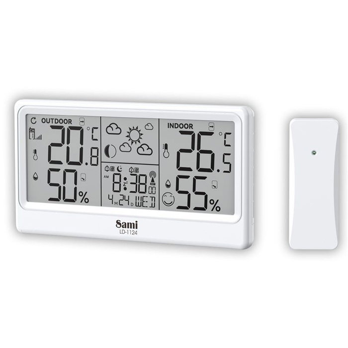Disfruta de una visualización clara y completa gracias a su pantalla LCD retroiluminada. Este práctico dispositivo, de la marca de confianza SAMI, te permite consultar de un vistazo los datos más relevantes de tu entorno.