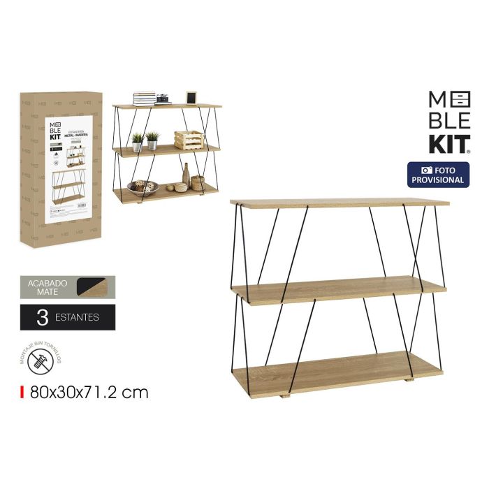 Estanteria 3 Niv.Metal-Madera Black Moblekit