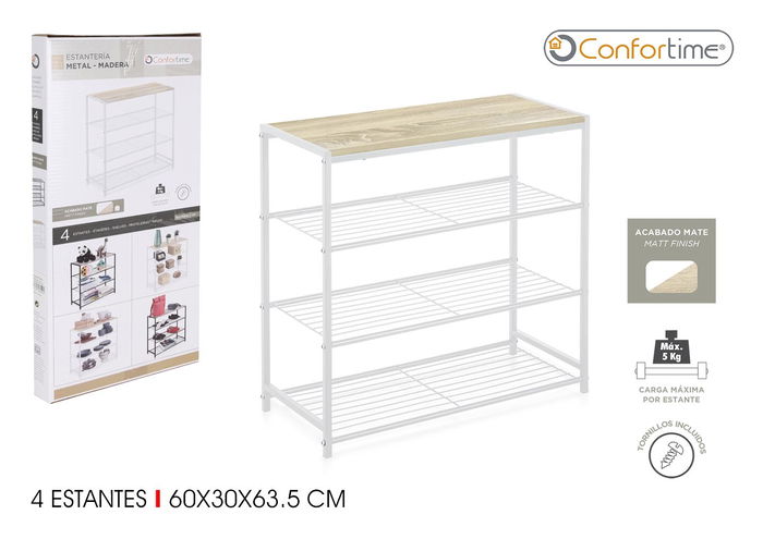 Estanteria 4 Niv.Metal-Madera Blanc Moblekit