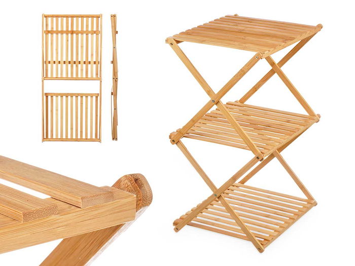 Giftdecor Estanteria Bambu 3 Baldas Plegable 40x62x33.5cm Natural (Set de 4)