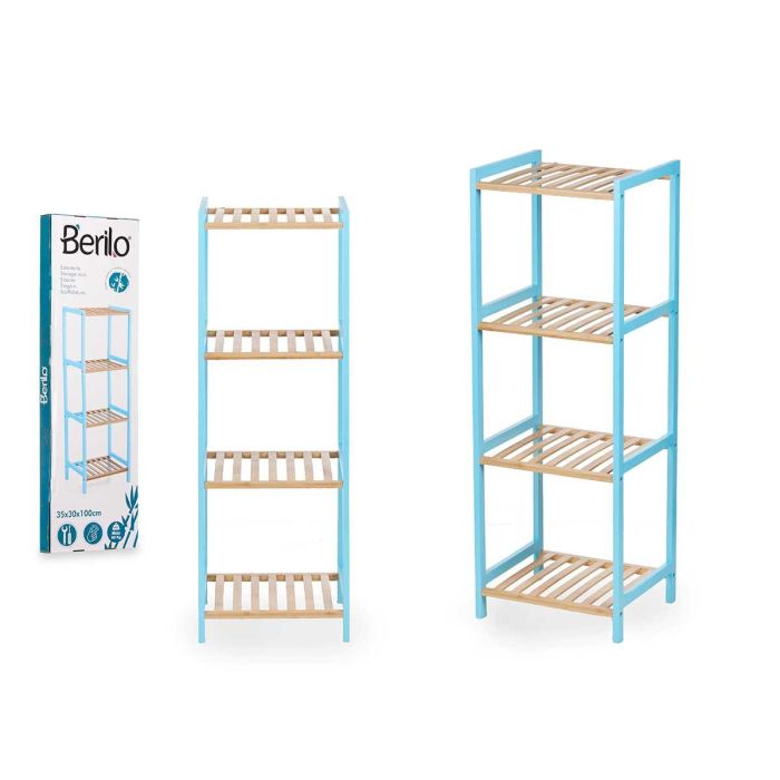 ESTANTERIA CUADRADA 4 ESTANTES BAMBU AZUL