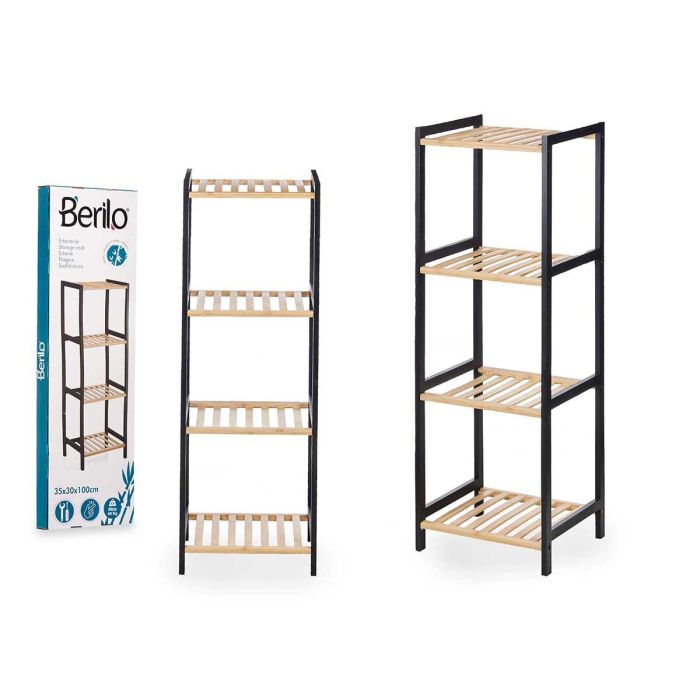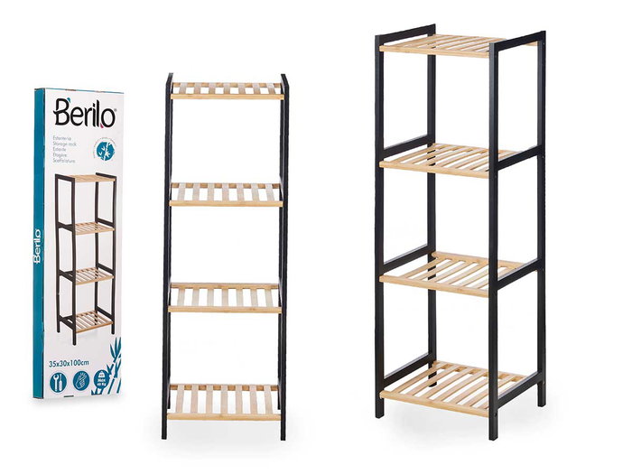 ESTANTERIA CUADRADA 4 ESTANTES BAMBU NEGRO
