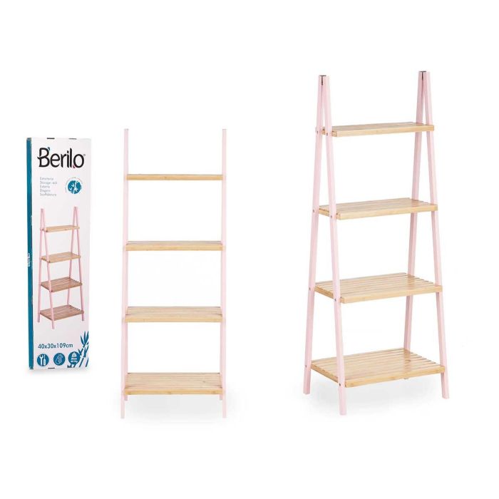 ESTANTERIA ESCALERA 4 ESTANTES BAMBU ROSA