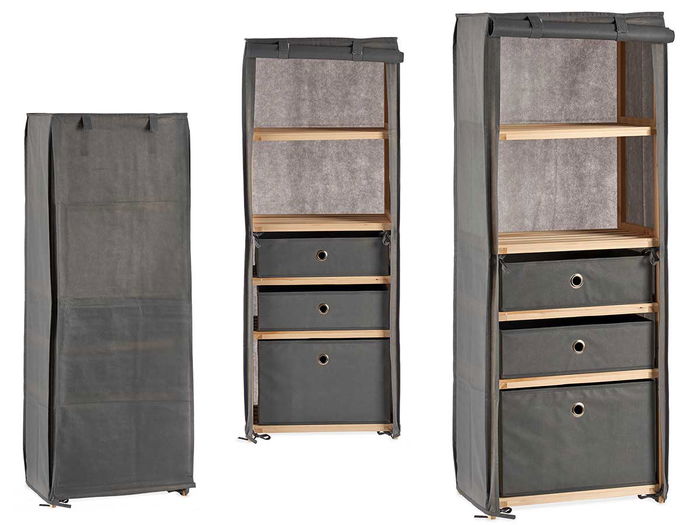 Kipit Estantería de Tela con 3 Cajones Gris 28x113x42 cm (3 Unidades)