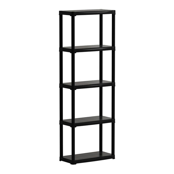Estantería polipropileno, 5 estantes, capacidad de carga de 20 kg por estante, negra, material reciclable - 60 x 30 x 176 cm