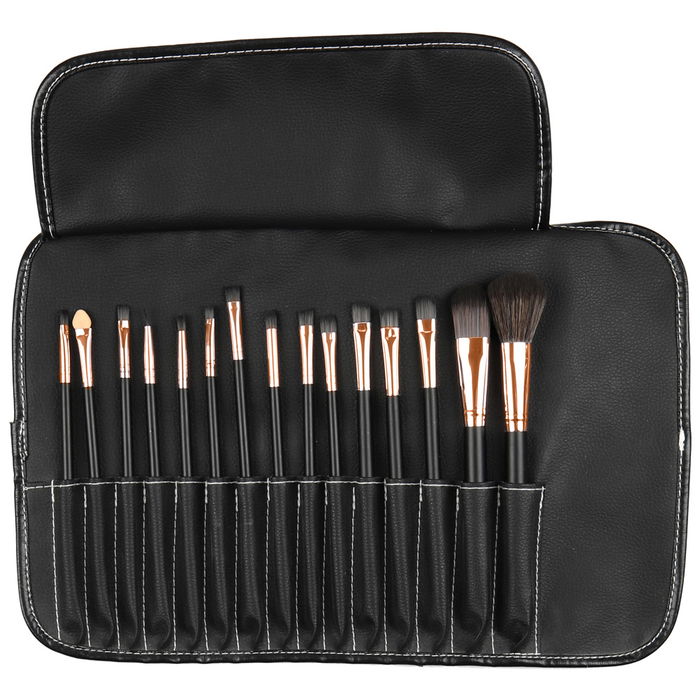 - Estuche con 15 brochas de maquillaje de distintas formas. Para un maquillaje perfecto.