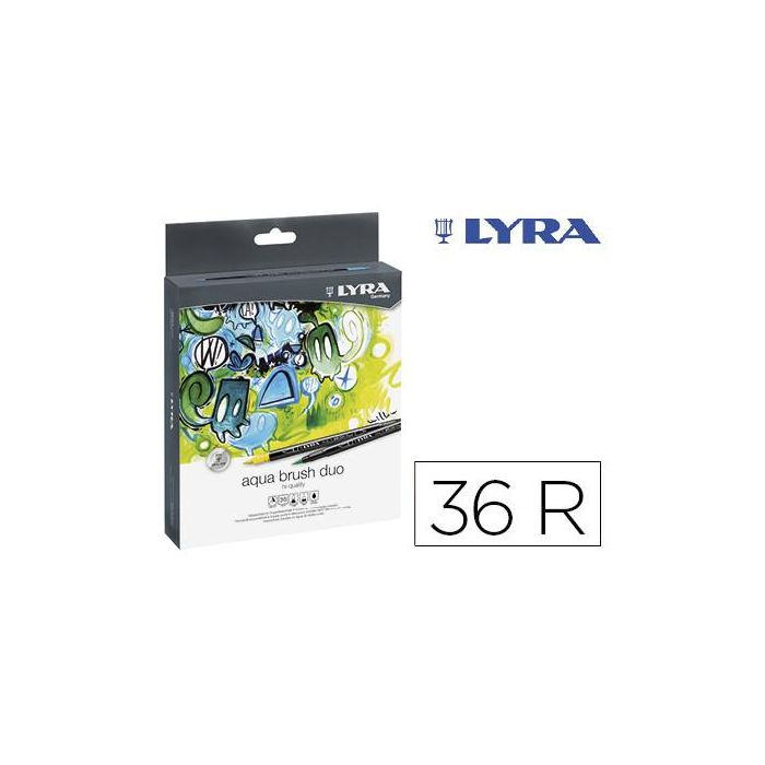 Lyra Aqua Brush Duo Rotulador Caja 36 Colores Surtidos Punta Pincel y Fina Tinta Base Agua