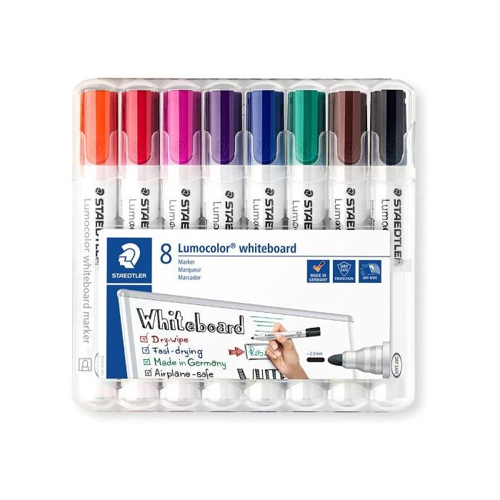 Staedtler 351 WP8 Estuche con 8 Marcadores Lumocolor para Pizarra Blanca, Punta Extra-Gruesa, Colores Surtidos, Alemania