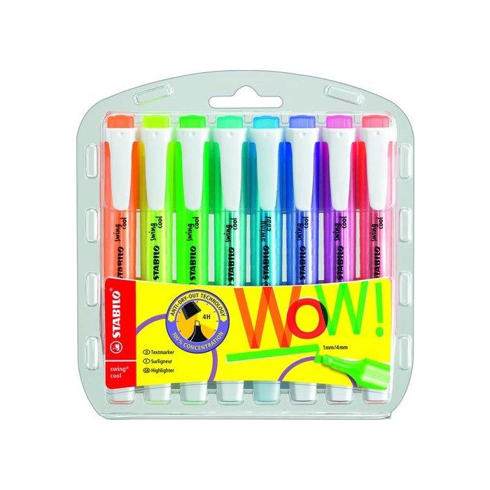 Stabilo Estuche 8 uds Swing Cool - Pastel, Punta de cincel, 275/8-3, Azul, Verde, Naranja, Rosa, Rojo, Violeta, Amarillo
