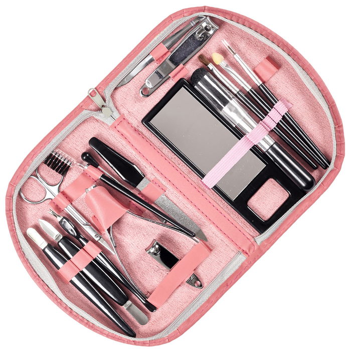 - 18 accesorios para el cuidado de tus uñas en un estuche con cremallera.