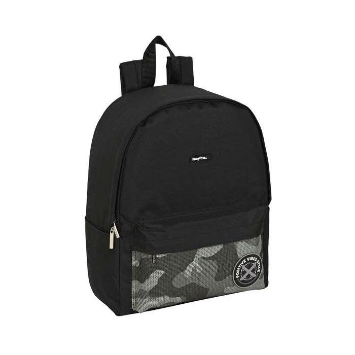 Alojamiento acolchado para portatil de hasta 14,1''. Bolsillo interior con cremallera. Bolsillos laterales portabotellas. Doble tirador en cremallera principal para facilitar su apertura. Bolsillo frontal con cremallera. Hombreras, espalda y base acolchadas. Asa de mano en la parte superior.