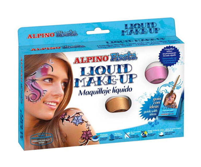 Maquillaje de fácil aplicación con pincel, permite dibujar pequeños detalles o maquillar grandes zonas. Una vez aplicado no mancha. Los colores se pueden mezclar para crear nuevos.