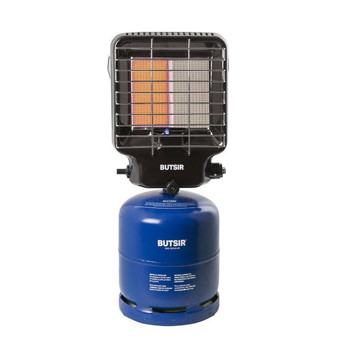 Estufa de infrarrojos portátil barrachina ebbc0022 butsir. para bombonas azules. ligera, compacta y con asa. homologada para uso doméstico tanto interior como exterior. válvula de seguridad y analizador de atmósfera. encendido piezoeléctrico. potencia máxima: 3000w. consumo máximo: 200g/h. medidas: 15x25x35cm. peso: 3,25kg. funda y bombona no incluídas.