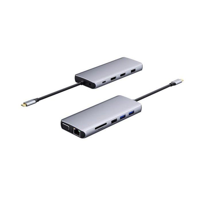eSTUFF Hub Móvil USB-C Triple Pantalla 12 en 1 para PC y Tabletas con Puertos HDMI, VGA, PD 100W, Ethernet y USB 3.2