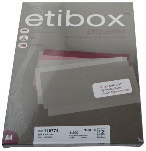 Etiquetas Adh.Impr. A4 Blanca Caja 100H C.Rectos 105X 48 Mm 1.200 Uds.