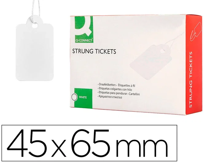 Las etiquetas colgantes con cuerda son etiquetas versátiles y personalizables utilizadas para diversos propósitos como branding, fijación de preciose identificación de productos. Están fabricadas con cartulina y cuentan c on una cuerda para fijar al producto. Ofrecen una solución de etiquetado flexible y duradera para una amplia gama de aplicaciones. Medidas: 45x65 mm. Caja de 400 unidades.