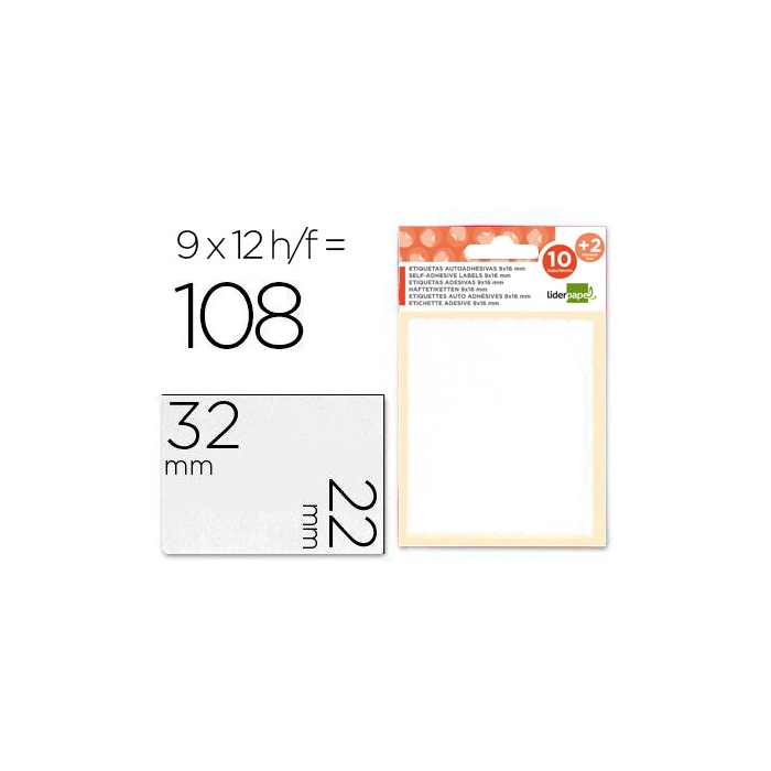 - Etiquetas/Hoja: 12