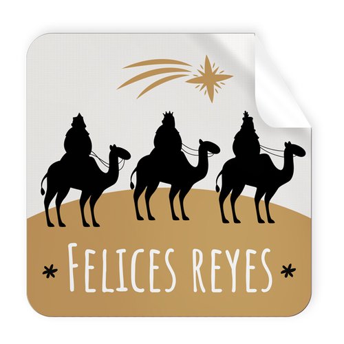 Etiquetas Regalo Adh. Rollo 250 Uds. Cuadradas 40X40 Navidad Felices Reyes