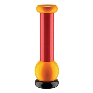 Diseñado por Ettore Sottsass. Un molinillo de sal, pimienta y especias, de madera de haya que nace de un inconfundible juego de volúmenes coloreados superpuestos, típico de la poética de Ettore Sottsass. Aliado del gusto, vuelve exquisitos incluso los platos más sencillos gracias a la intensidad de las especias recién molidas. Una pequeña escultura coloreada para utilizar también en la mesa.
