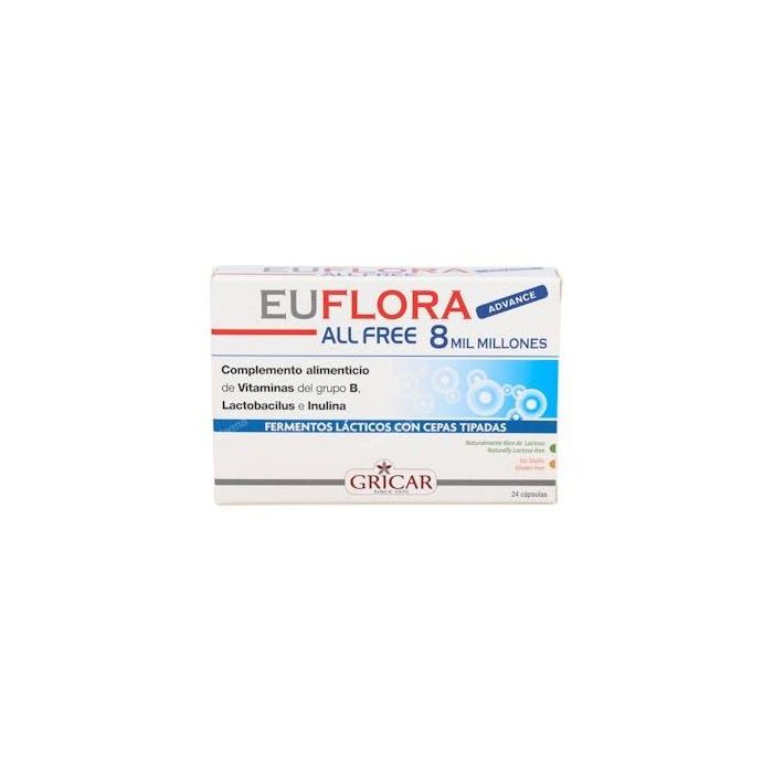 GRICAR Euflora 8 All Free Advance Suplemento Simbiótico con Probióticos, Vitaminas B e Inulina 24 Cápsulas