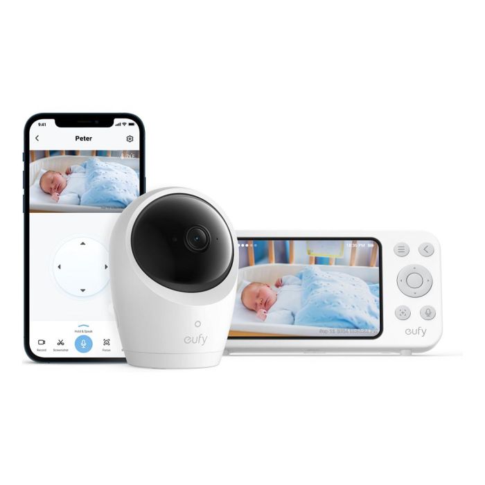 EUFY Baby Monitor E20 con Cámara Wi-Fi, Audio Bidireccional, Visión Nocturna, Rotación 360°, Batería 5000 mAh, Blanco