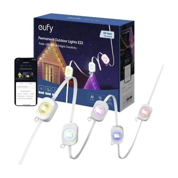 Eufy Permanent Outdoor Light, 15m, Cadena de luces decorativa, Multicolor, Flexible, Corriente alterna, 15000 mm