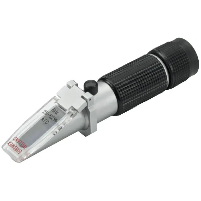 Diseñado para la realización de mediciones rápidas, este refractómetro Euromex es fácil de usar y de fabricación robusta. Incorpora compensación de temperatura automática para mediciones precisas.